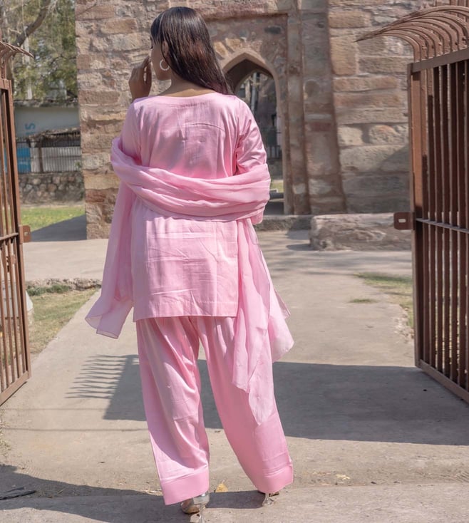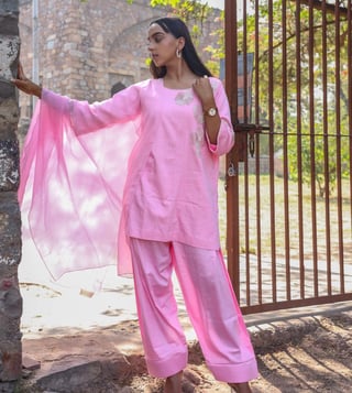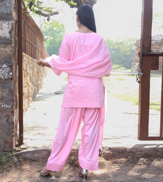 Khusboo & Pankaj Pink Cotton Silk Relaxed Fit Salwar Set