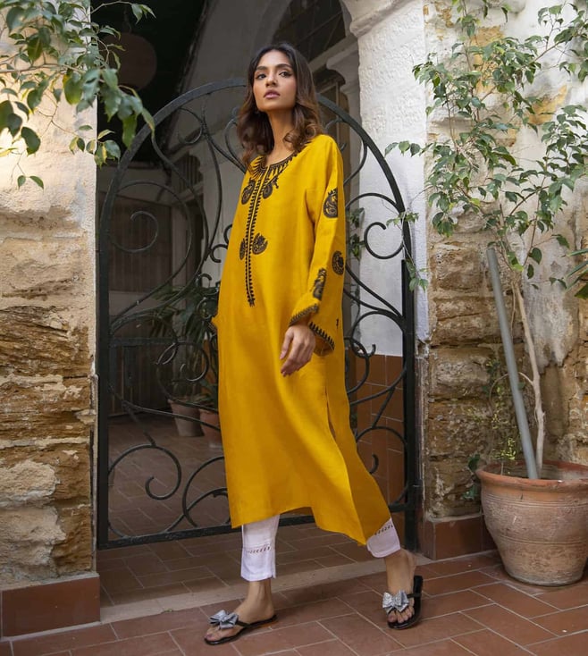 Beautifully crafted Yellow kurta set with delicate embroidery, offering a perfect blend of tradition and elegance. Ideal for festive occasions.