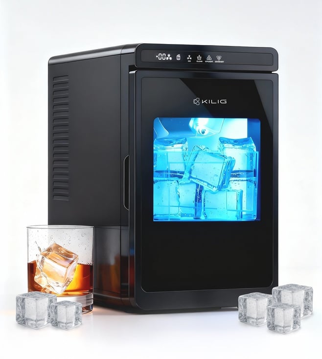 Clear Ice Cube Maker 3 Large Cubes in 20 Mins 12Kg 24H Portable with Self Cleaning