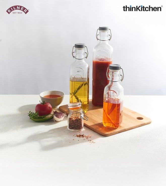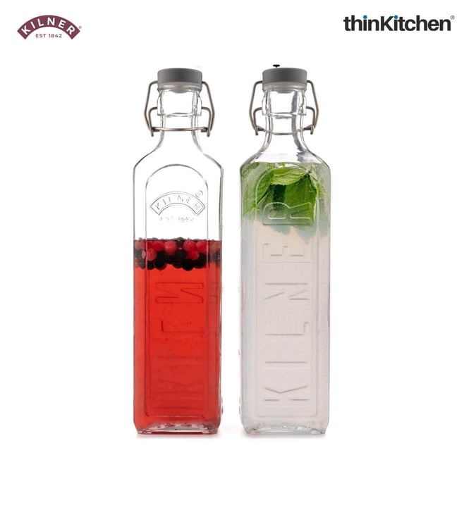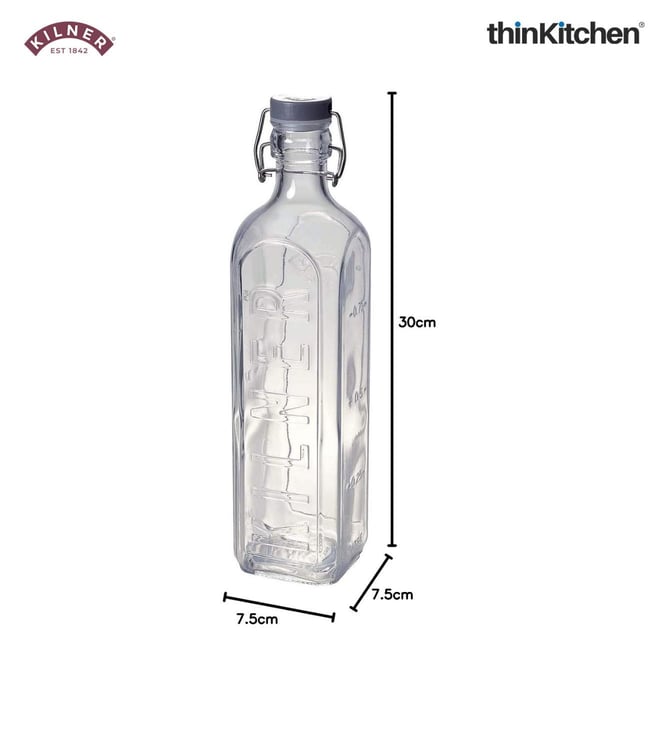 Kilner 1L Clip Top Bottle Perfect for homemade drinks, cordials & infused oils. Made from durable glass with airtight stainless steel clip & silicone seal. BPA-free, reusable, dishwasher safe (not for carbonated liquids).