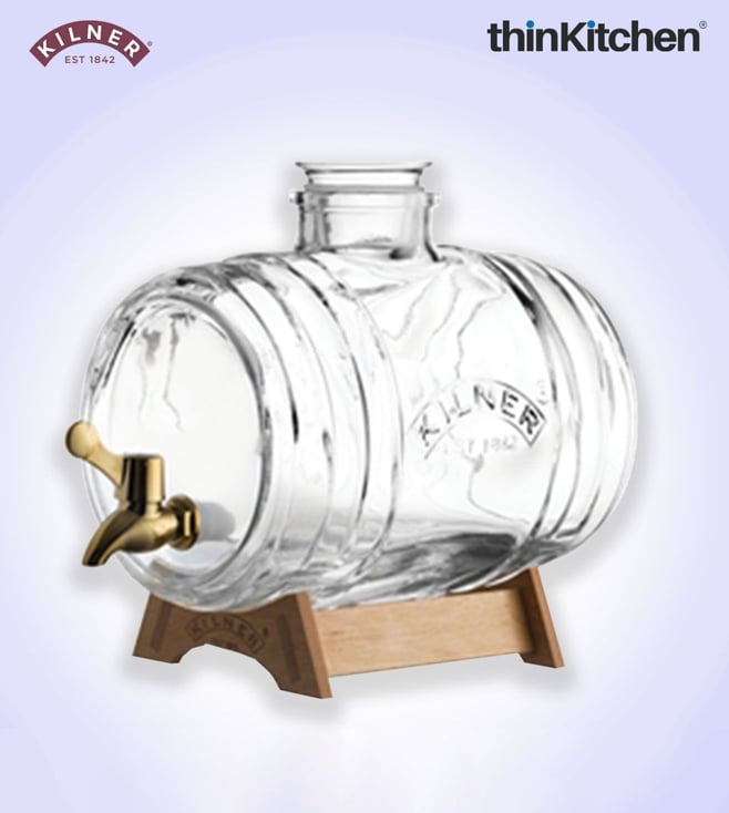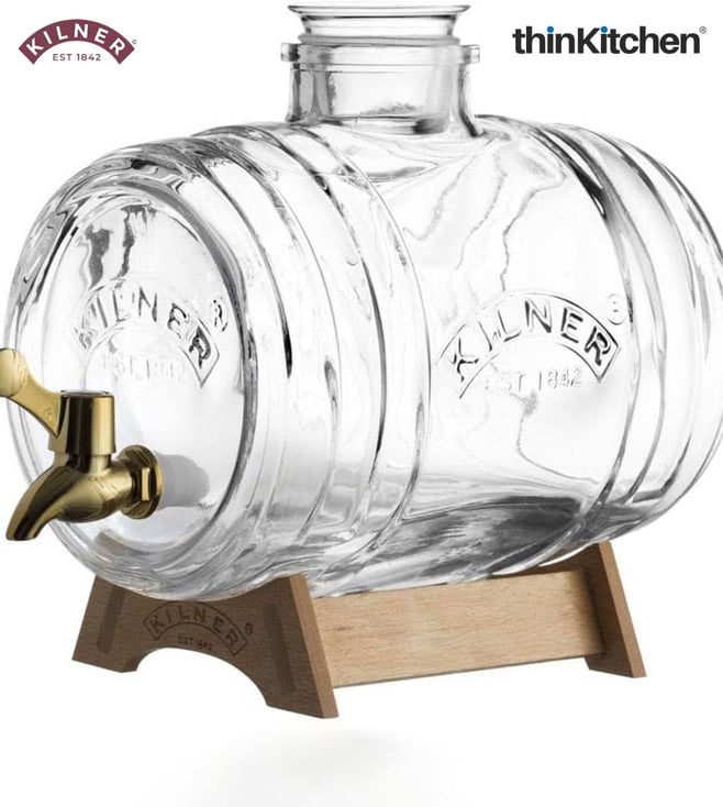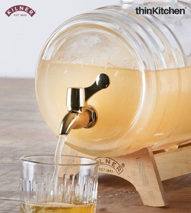 The Kilner 3.5L Barrel Dispenser is ideal for serving juices & cocktails at home events. Features a 50ml measure stopper, easy-pour tap & an elegant wooden stand for stability and style.