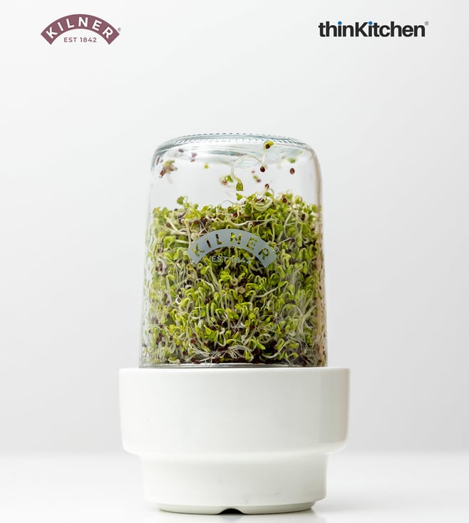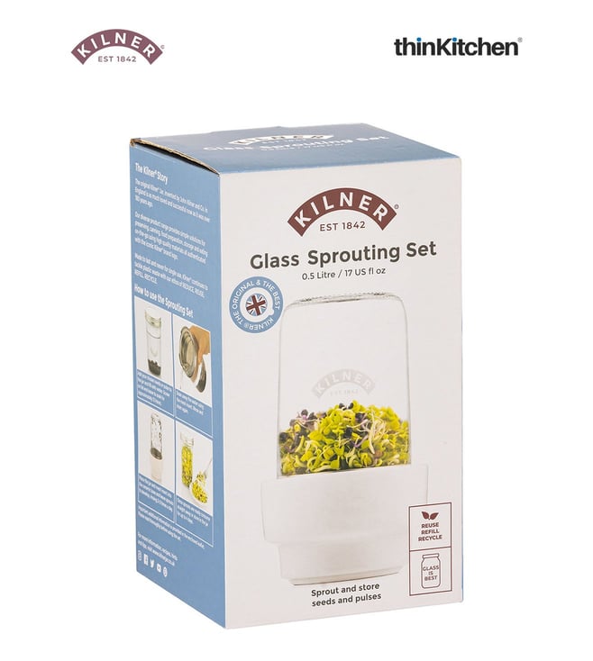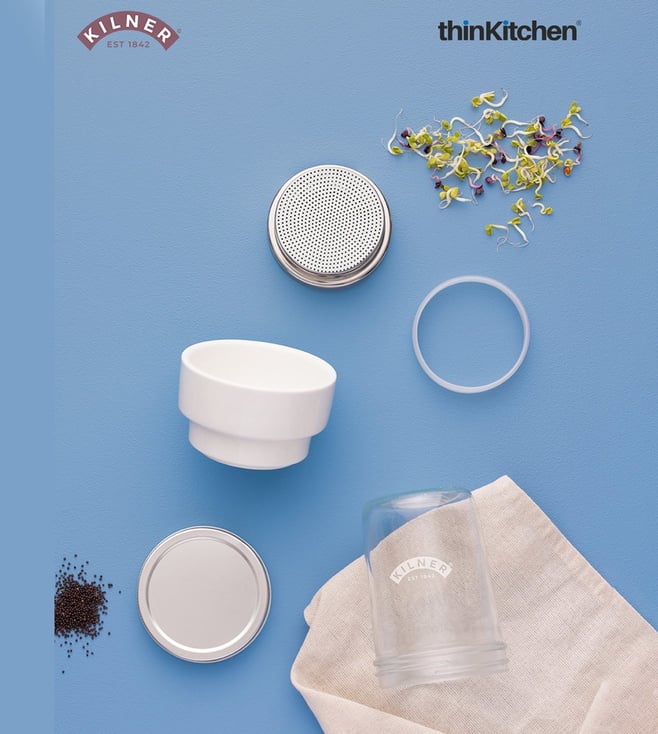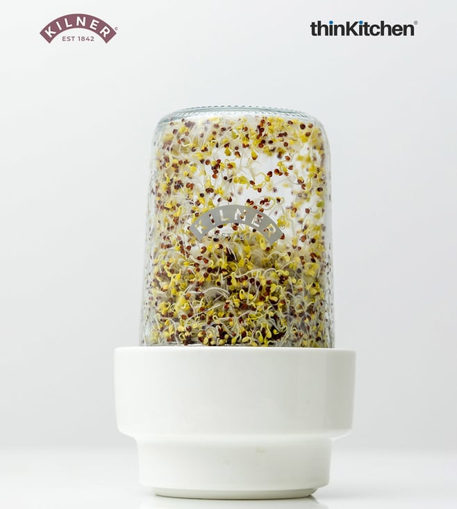 Easily sneak nutrient-rich sprouts into your meals by growing your own with the Kilner sprouting set. Featuring Kilner's world-renowned canning jar with durable stainless steel and ceramic components.