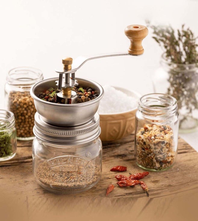 The Kilner set of 1 seasoning grinder set is the perfect kitchen gadget for grinding and storing ingredients such as rock salt, peppercorns, spices, dried herbs and seeds. The hand-operated grinding mechanism is made with adjustable settings to control the thickness of the mixture. Keep the final mixture fresher for longer in the 250 ml glass jar and one-piece lid. It is BPA-free and does not absorb odors, flavors or stains. It is made to last and never for single use.