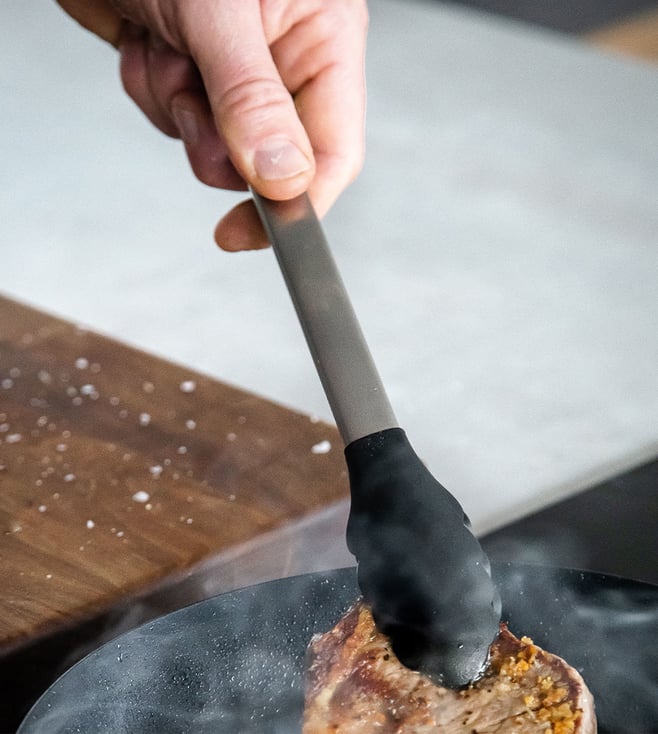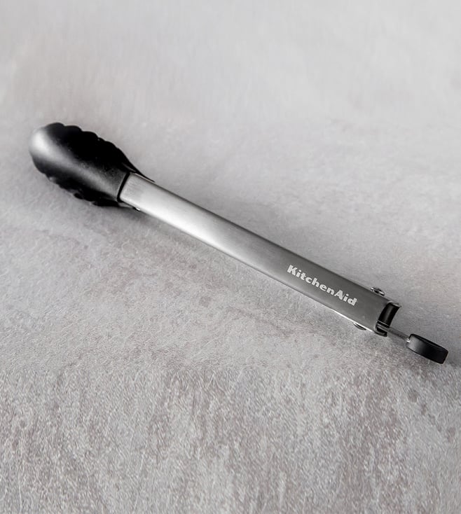 Made of strong stainless steel with silicone tips, these KitchenAid serving tongs are built for maximum performance. The silicone is heat resistant and is suitable for use on non-stick surfaces, making them ideal for tossing food or serving directly from pans. A locking mechanism makes them easy to store in a drawer or utensil holder.