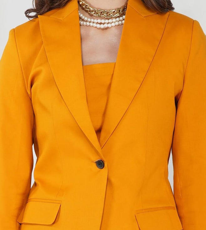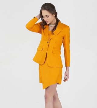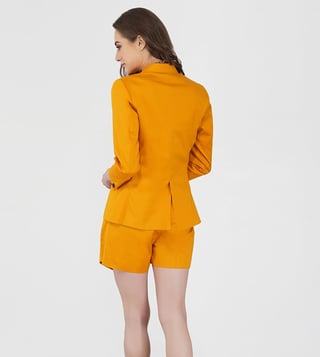 Hit the roads in style by wearing this blazer from the Marigold collection. It is crafted from cotton lycra. Disclaimer: All other items in the image are only for display purposes and will not be a part of the delivery content. Product colour may slightly vary due to photographic lighting sources. Country of Origin - India.