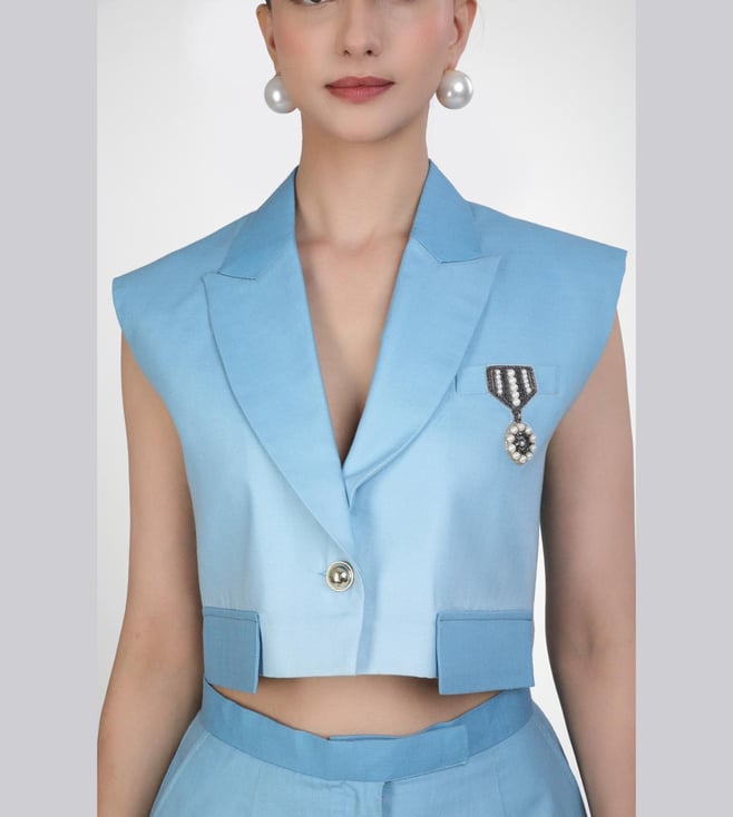 Explore The Vibrant Kovet Pastel Blue Sweet Linen Regular Fit Solid Crop Blazer Perfect For Any Occasion, This Stylish And Comfortable Dress Showcases A Colorful Blend In Soft Cotton. Disclaimer: All Other Items In The Image Are Only For Display Purposes And Will Not Be A Part Of The Delivery Content. Product Colour May Slightly Vary Due To Photographic Lighting Sources. Country Of Origin - India.