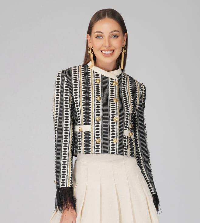 Black & Cream Ying Yang Monochrome Bomber Jacket