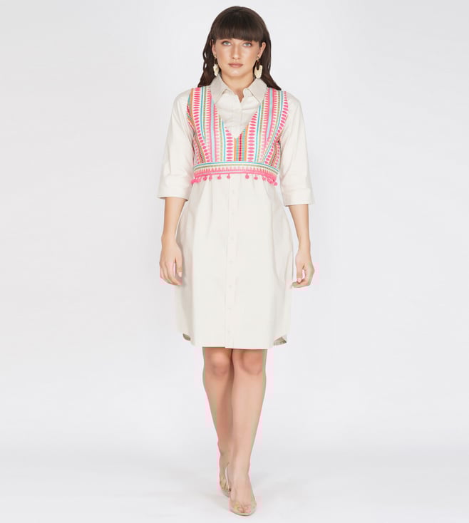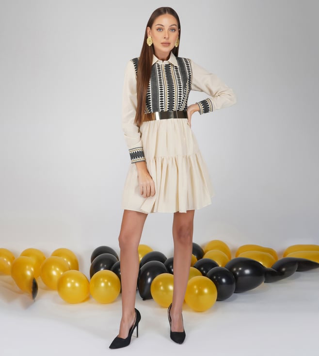 Black & Cream Ying Yang Cotton Flax Shirt Style Dress