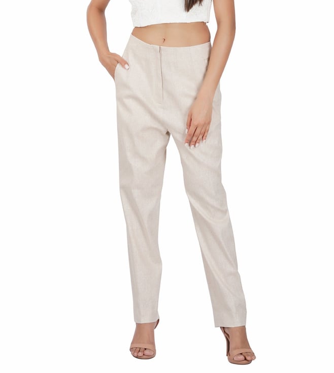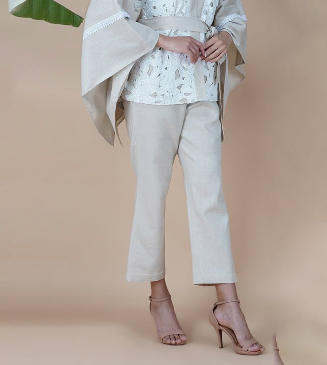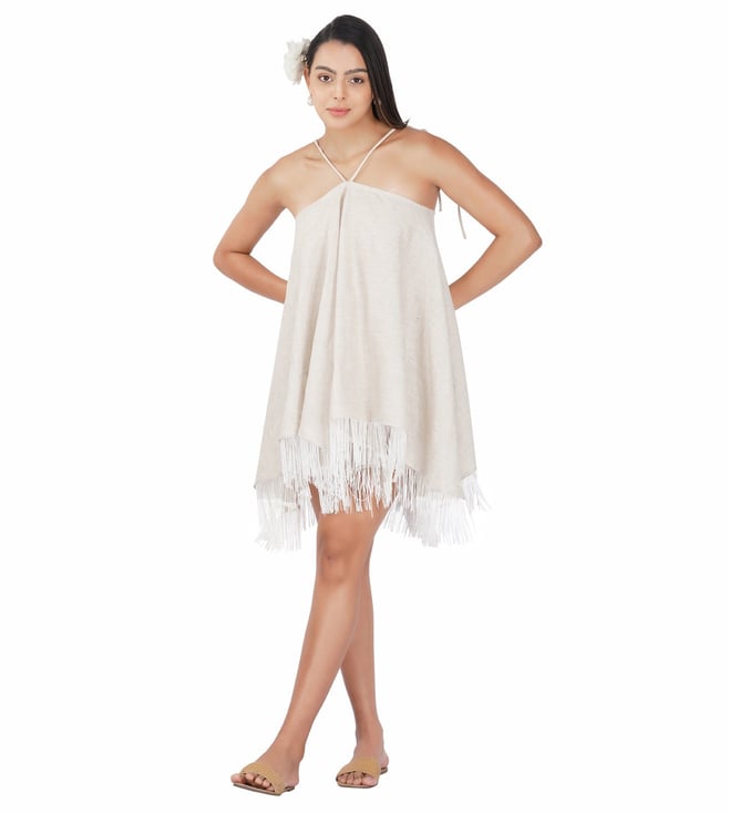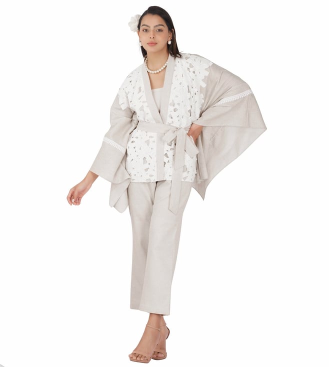 Beige White & Golden Begum Heritage Cotton Lurex Kaftan With Golden Embellishments