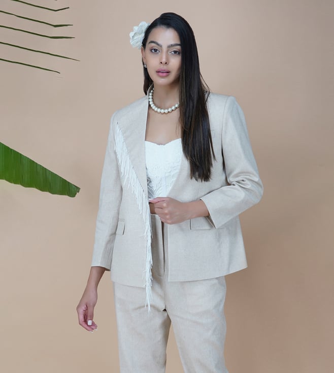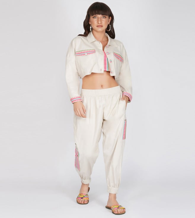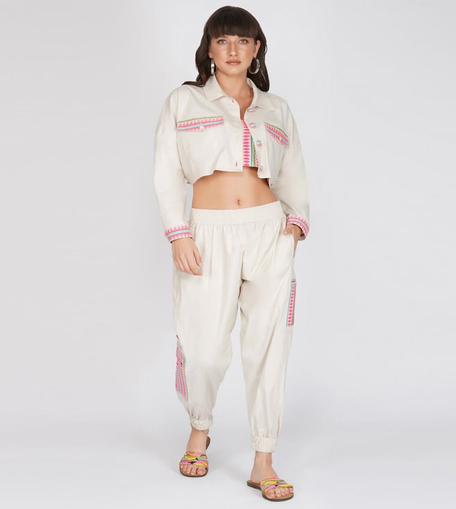 Beige Jogger and Jacket Set with Multicolor Camisole (Set of 3)