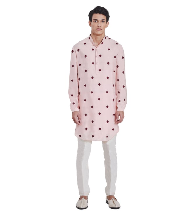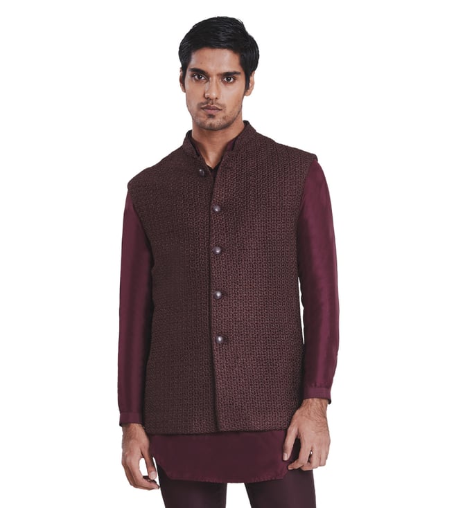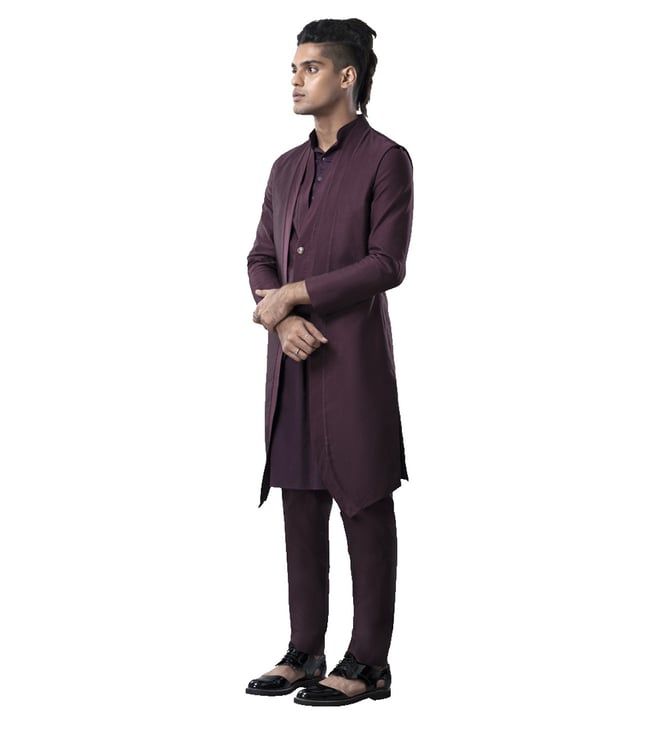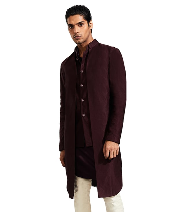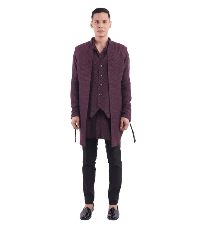Wine Tri-Flower Kurta With Jacket and Breeches