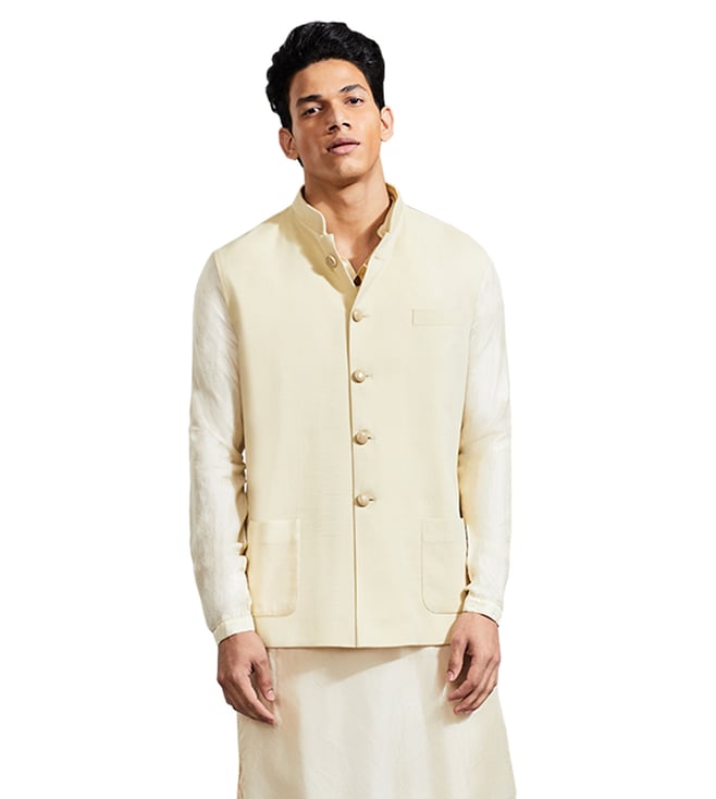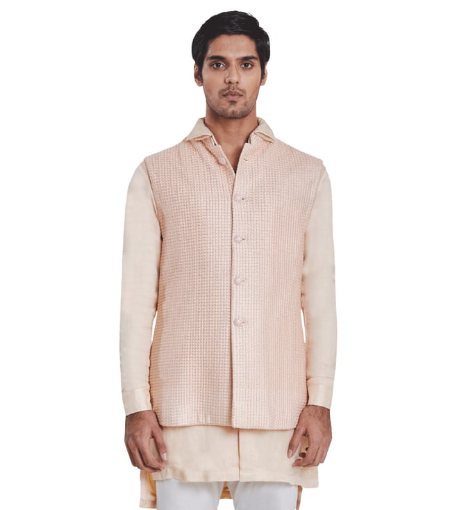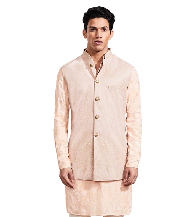Beige Micro Foilage Short Decon Kurta Wth Jacket