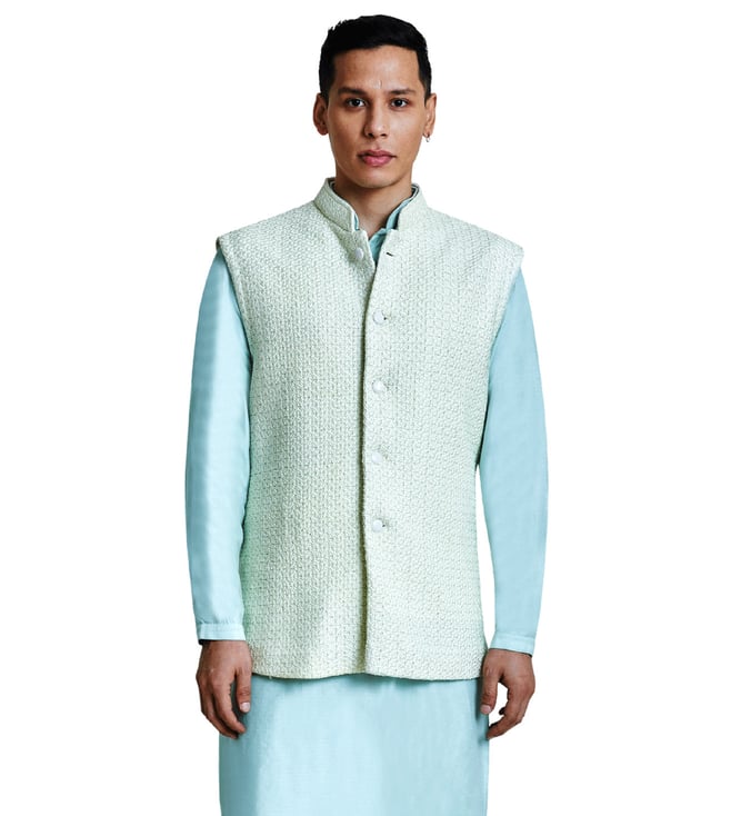 Ice Blue Outspread Bom Arrow Sherwani Jacket