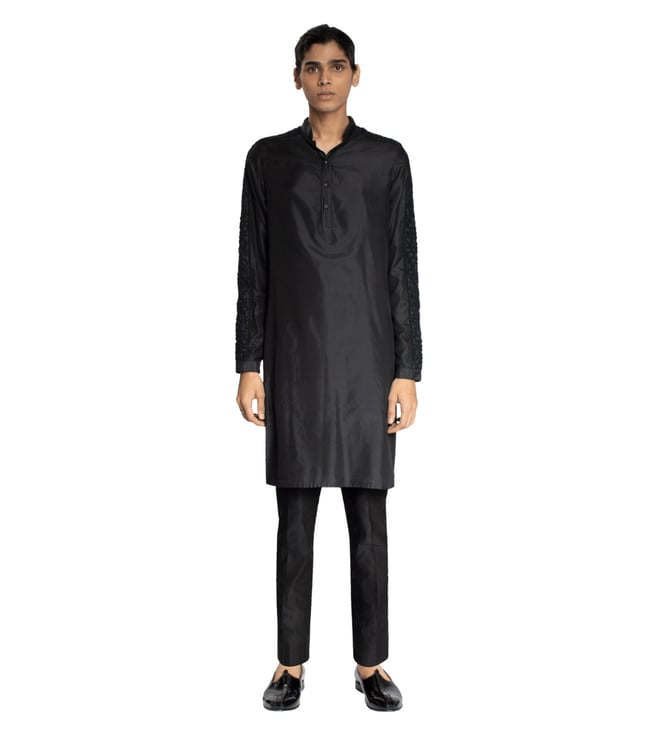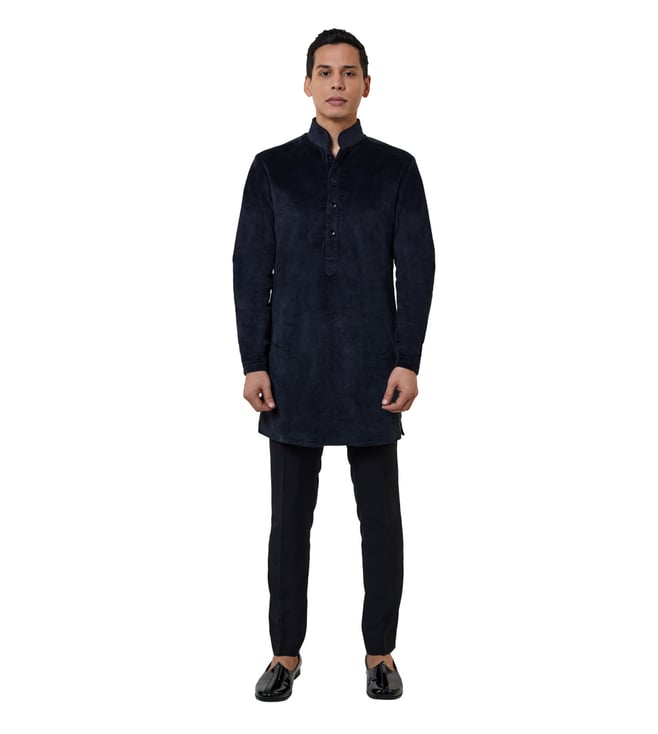 Navy Tri-Flower Kurta With Jacket and Breeches