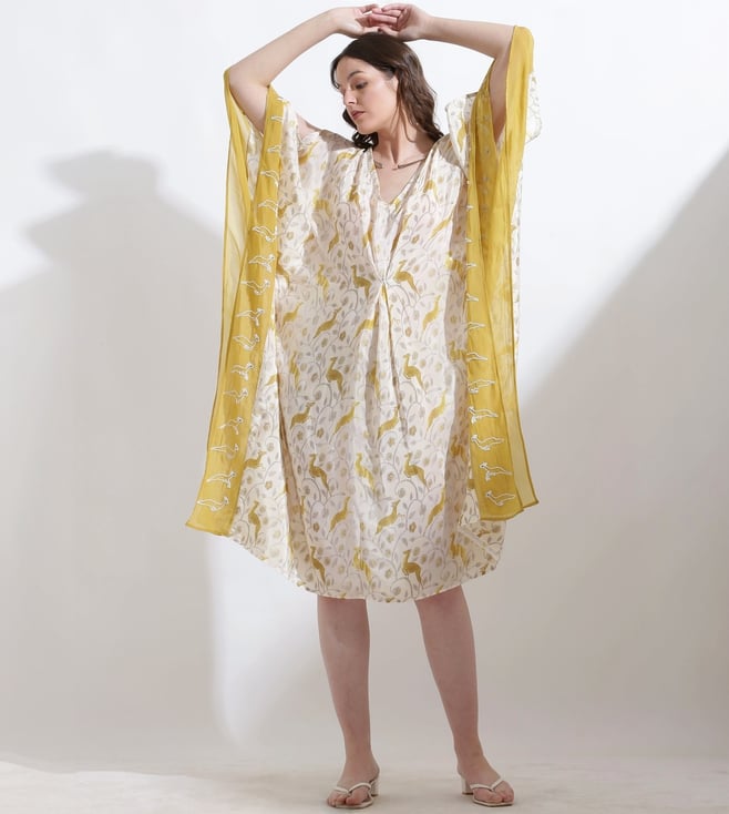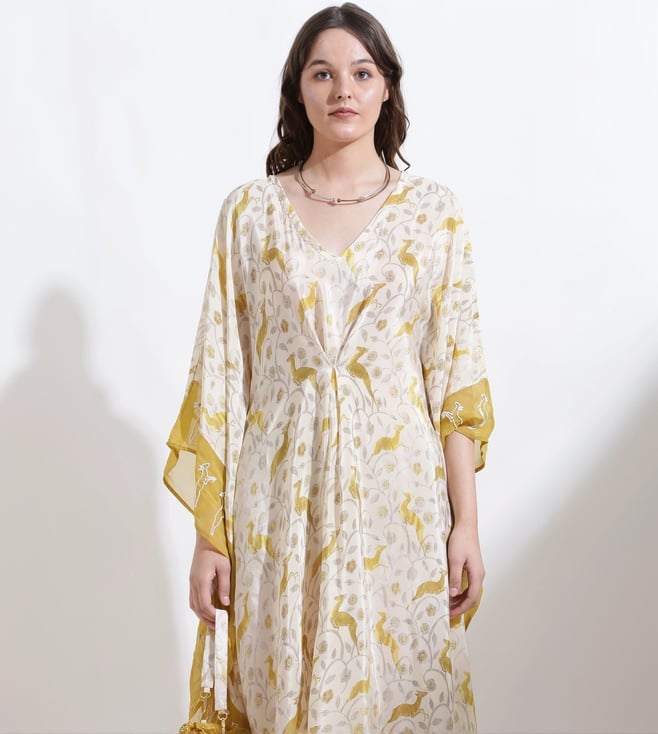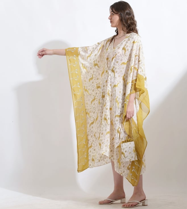 Lend a fashionable edge to your attire with this kaftan from the Rooh collection. It is crafted with care using crepe. Disclaimer: Product colour may slightly vary due to photographic lighting sources. Country of Origin - India.
