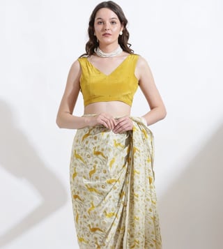 Earn admiration for your rich sense of style by wearing this saree from the Rooh collection. It is crafted with care using crepe. Disclaimer: All other items in the image are only for display purposes and will not be a part of the delivery content. Product colour may slightly vary due to photographic lighting sources. Country of Origin - India.