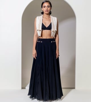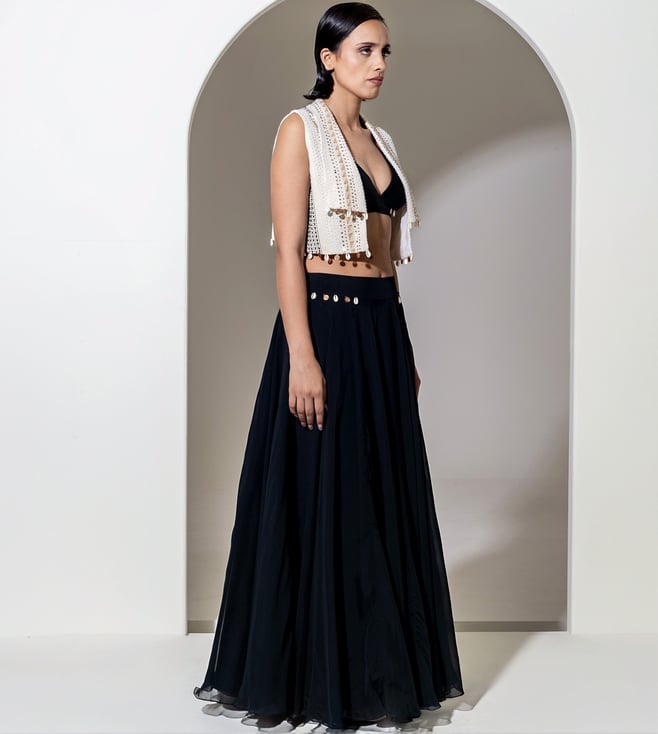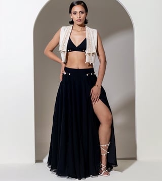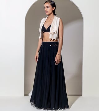 Kusmi Black Dhoop Chaon Bralette with Jacket & Skirt
