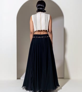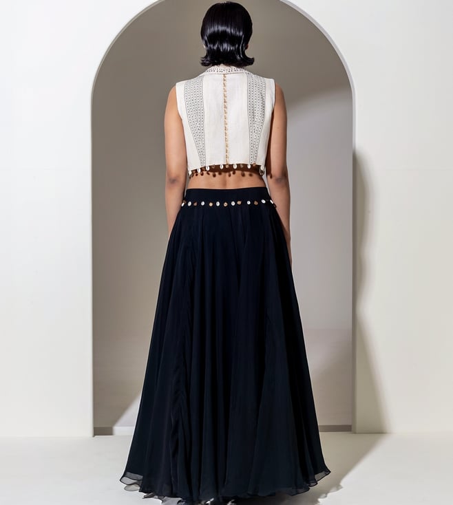 Exhibit a vibe of urbanity with this skirt set from the Dhoop Chaon collection. It is crafted with care using organza. Disclaimer: Product colour may slightly vary due to photographic lighting sources. Country of Origin - India.