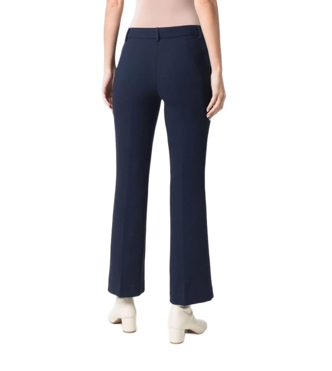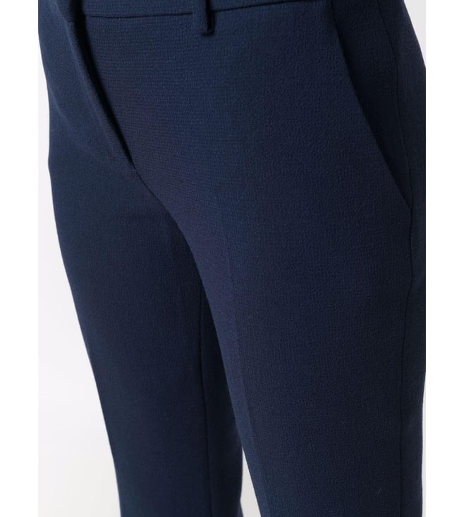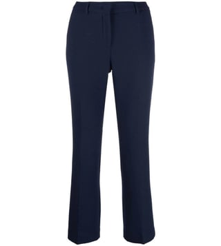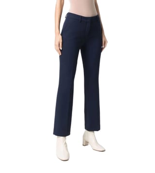 Elevate your wardrobe with the L'Autre Chose Navy Tailored Fit Trousers. Designed with outer: wool 100%, navy-blue wool-blend tailored cut cropped leg fine knit two diagonal pockets to the sides. these trousers combine comfort and sophistication for everyday wear. Products purchased from Darveys are supported exclusively by the warranty/exchange policies of Darveys and its partner boutiques. Brand owners and their channel partners are not responsible for exchange/warranty services for items purchased through Darveys.