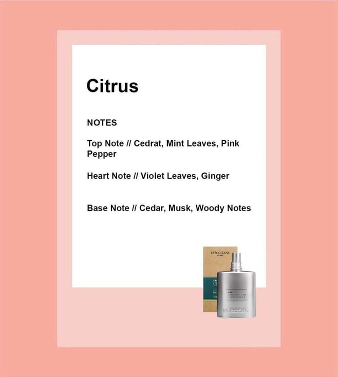 Cap Cedrat is the essence of escape, of an endless horizon, the absolute freshness of sea spray mingling with zesty cedrat. This blend of vibrant, aquatic and citrus notes is set over an intriguing base of woody spices and captures the essence of a Cape Peninsula, where the ocean meets the shore. Ideal for an adventurous, independent man looking to escape the daily grind, this fragrance is the perfect fit for the insatiable traveler who is always seeking new challenges.