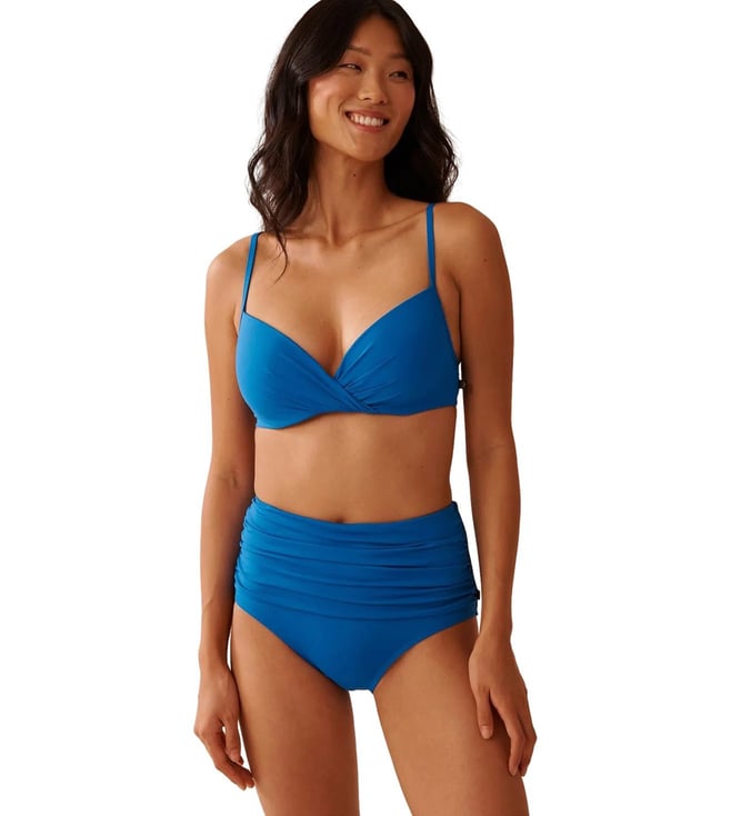 La Vie En Rose Azure Blue Draped High Waist Bikini Bottom