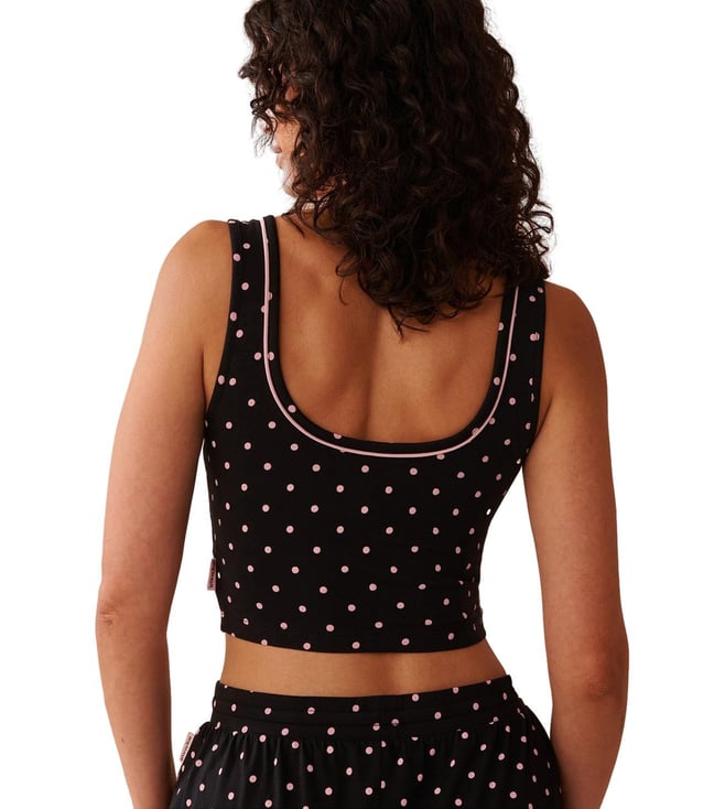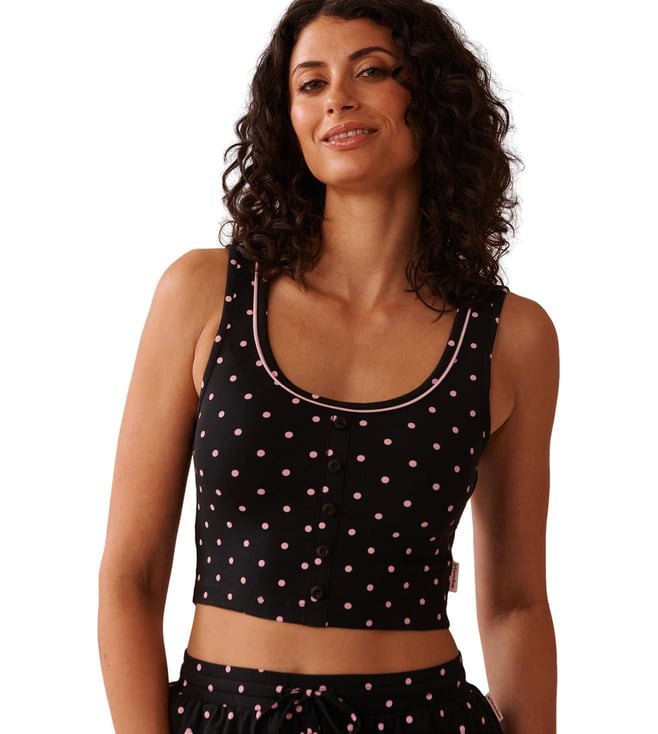 Black Button Detail Printed Crop Camisole