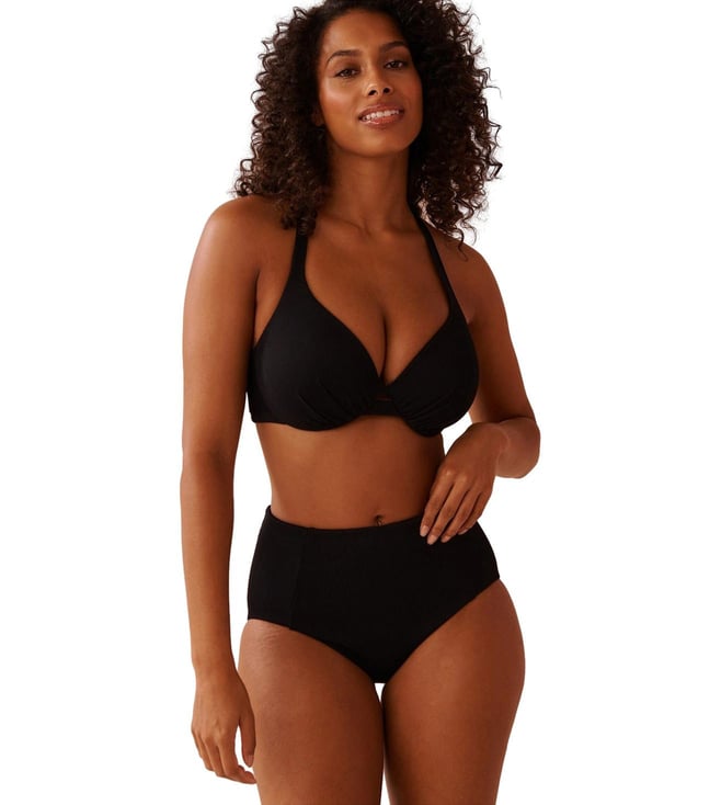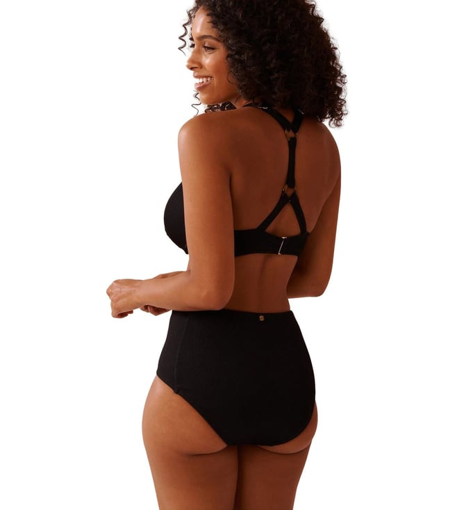 La Vie En Rose Black Ribbed D Cup Full Coverage Bikini Top