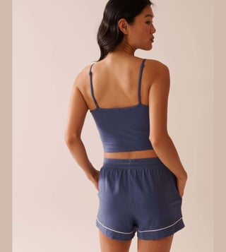 Make a head-turning statement by wearing this blue regular fit sleeveless camisole from La Vie En Rose. Tailored to sartorial perfection from premium quality fabric, it assures a soft and soothing touch against the skin. The scoop neck boasts of exclusive appeal.