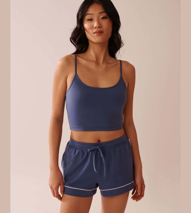 La Vie En Rose Blue Cotton Regular Fit Camisole