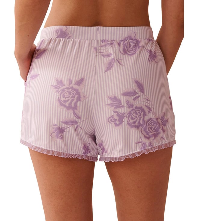 La Vie En Rose Purple Lilac Rose Printed Super Soft Pajama Shorts