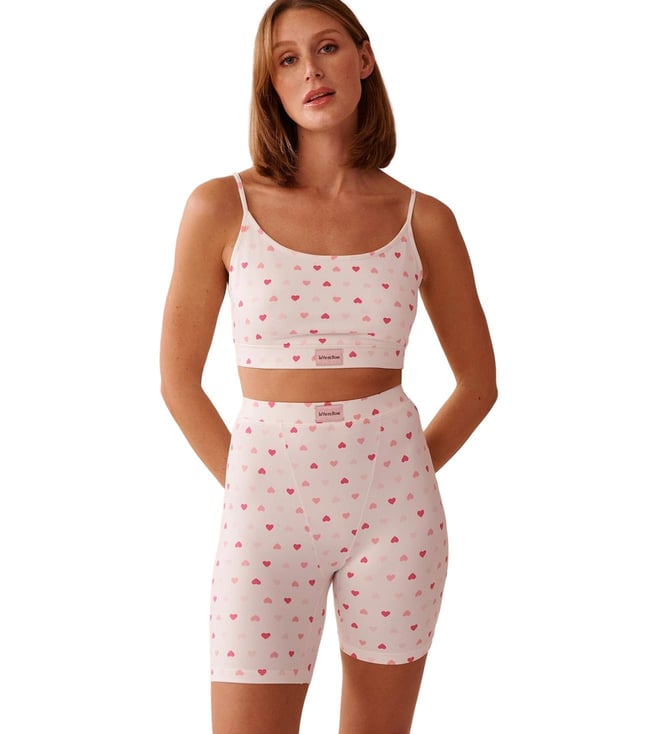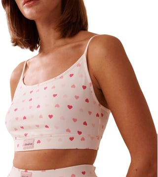 La Vie En Rose White Heart Printed Super Soft Crop Camisole