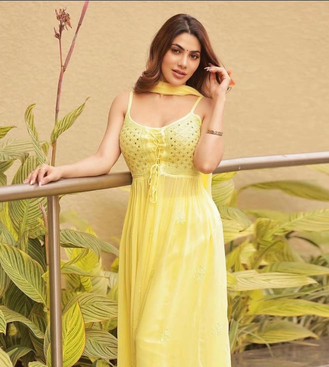 Label Aishwaryrika Yellow Spotlight Sugar Cookie Anarkali Chikankari Kurta with Pant and Dupatta