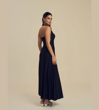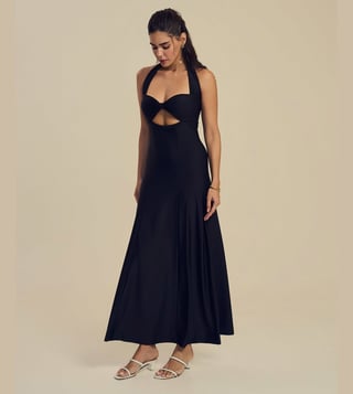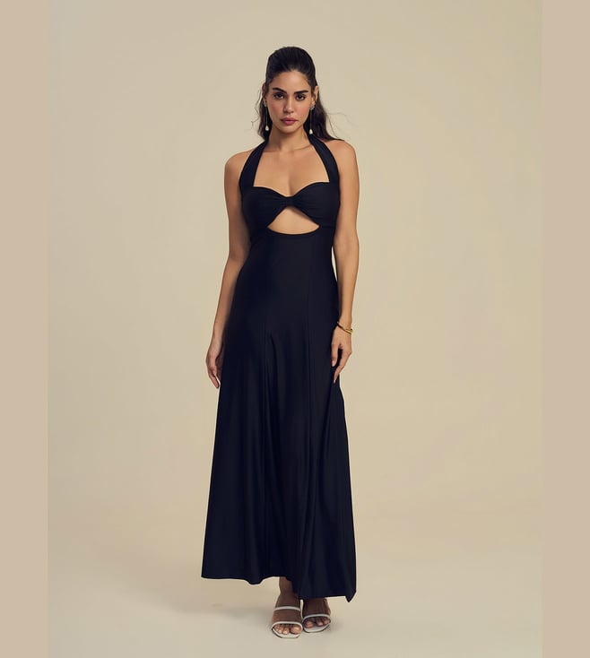 Raven bold, breezy maxi dress with a sculpting bust twist and an alluring underbust cutout. Designed for movement, it combines sensuality with understated elegance.