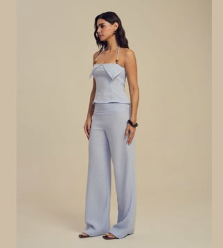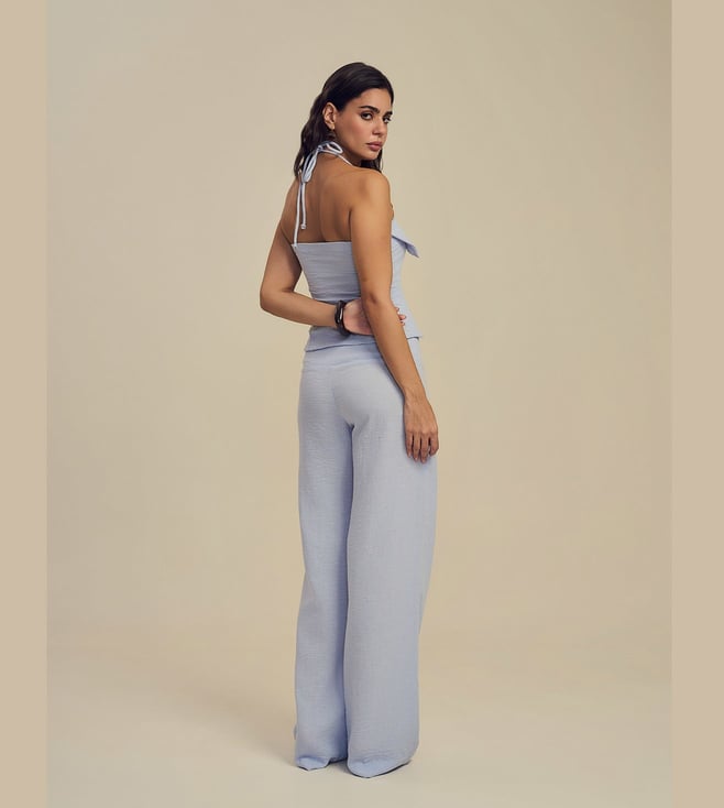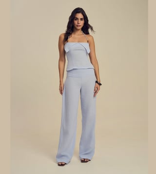 Frida pant in a soft powder blue hue features a flowy straight -leg pants, offering a lightweight and effortlessly chic look perfect for warm-weather dressing or casual resort outings.