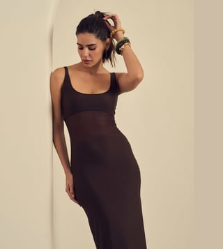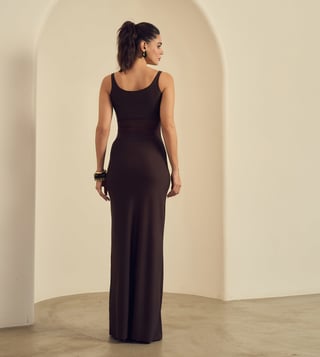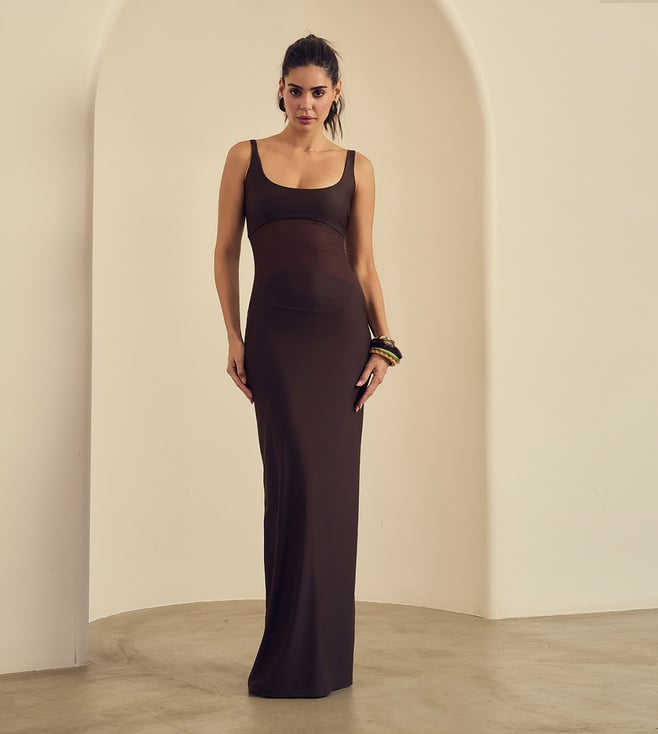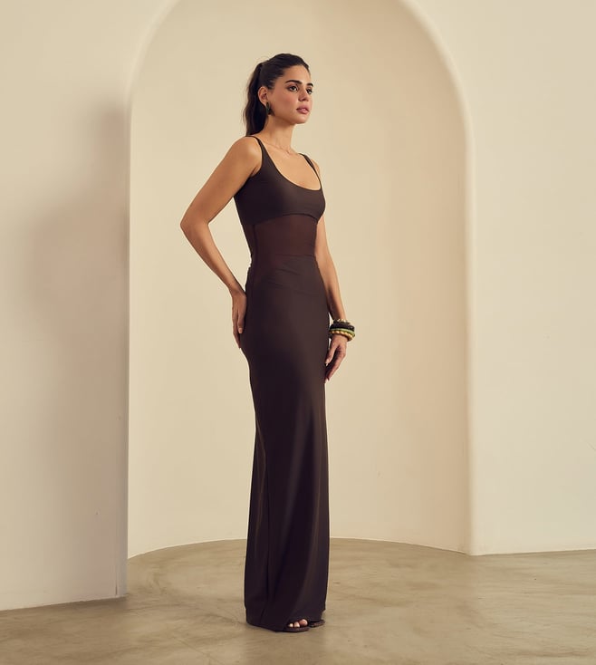 Label Frow Brown Malai Lycra & Net Lycra Praline Maxi Dress