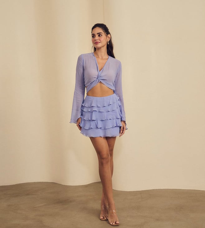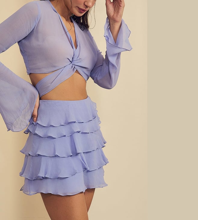 Bali playful lavender high-waisted mini skirt with cascading ruffle layers. Light and breezy, it¿s perfect for a fun, flirty day out or a summer evening look.