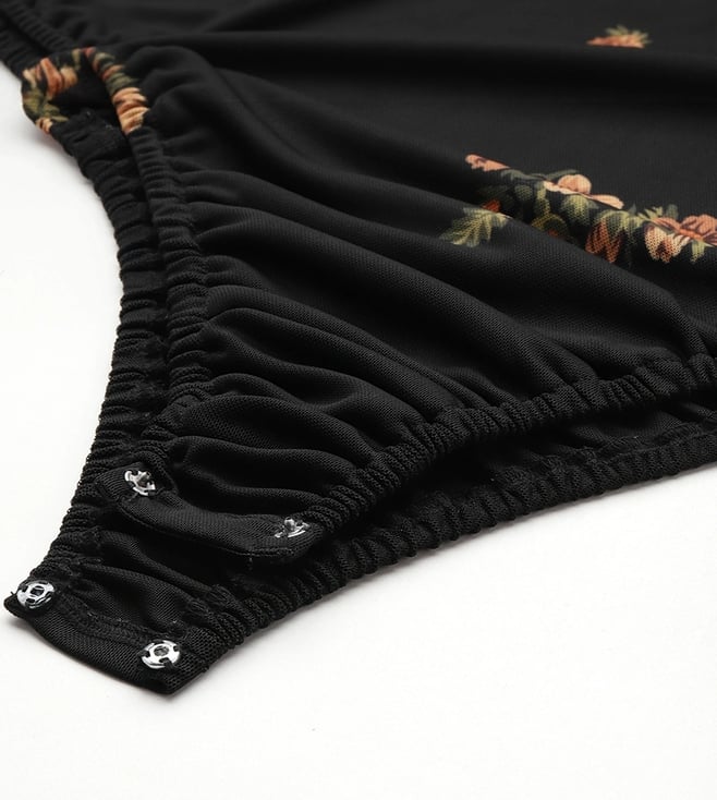 Label Ritu Kumar Black Regular Fit Floral Print Bodysuit