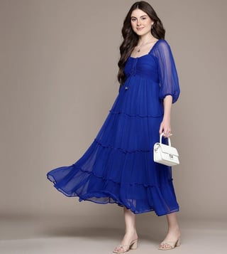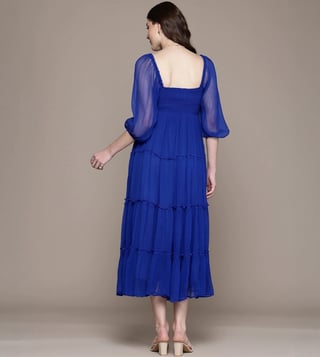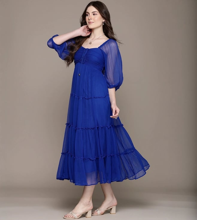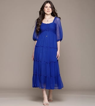 Build your wardrobe with this blue regular fit dress from Label Ritu Kumar. Tailored to sartorial perfection from premium quality fabric, it assures a soft and soothing touch against the skin. The square neck magnifies its overall appeal.