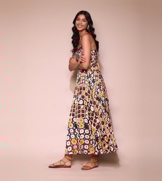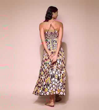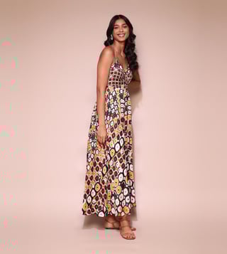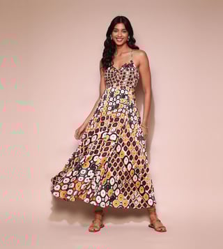 An exploration of the modern vocabulary of design, this dress from Label Ritu Kumar is sure to allure you. Tailored to sartorial perfection from dehry satin, it assures a soft and soothing touch against the skin. Disclaimer: Product colour may slightly vary due to photographic lighting sources. Country of Origin - India.