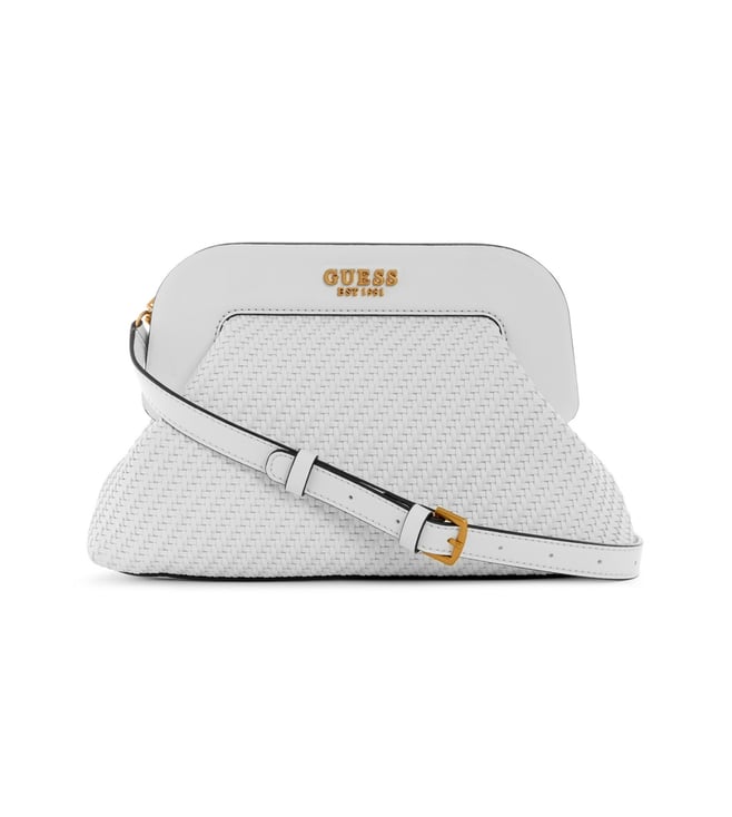 Women White Braided Abey Frame Detachable Strap Clutch