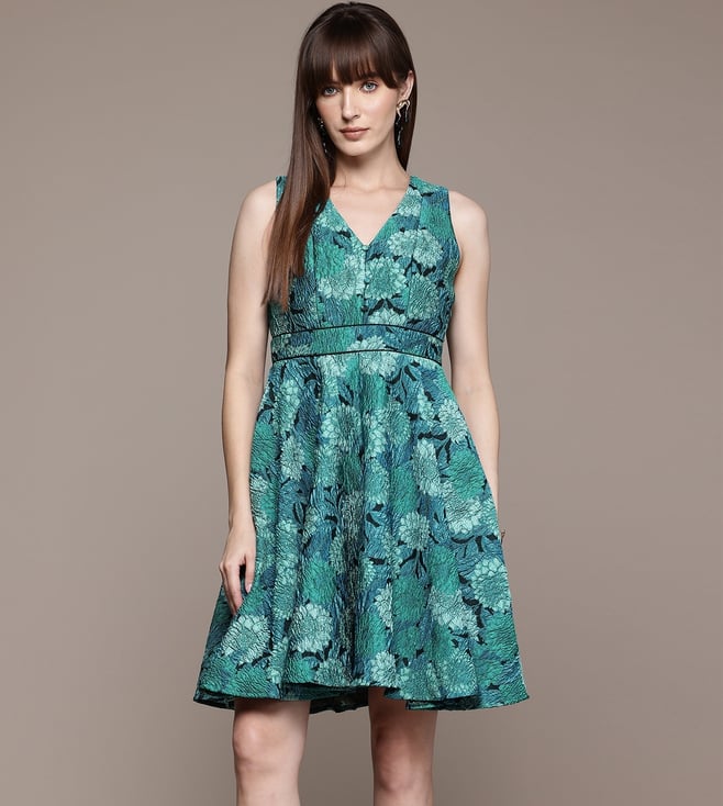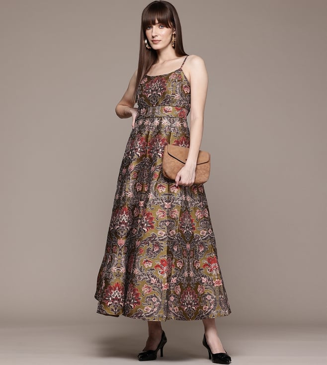 Green Alanna Floral Printed Regular Fit Dress With Belt