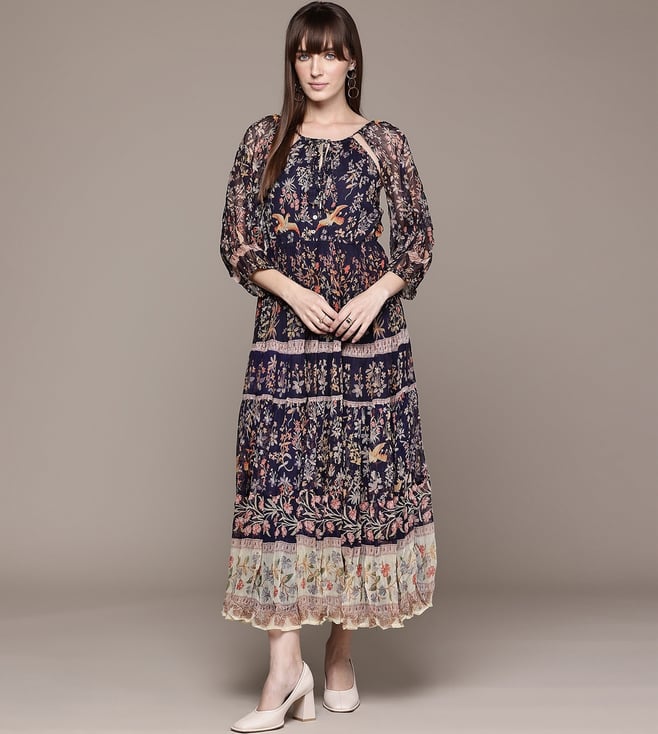 Ecru Multi Francis Printed Regular Fit Long Dress