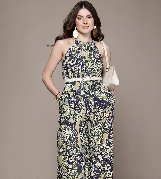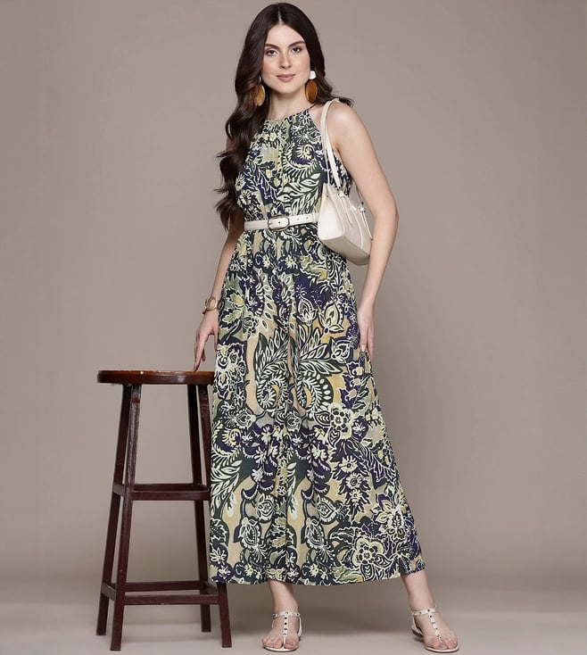 Label Ritu Kumar Green Regular Fit Printed Jumpsuit