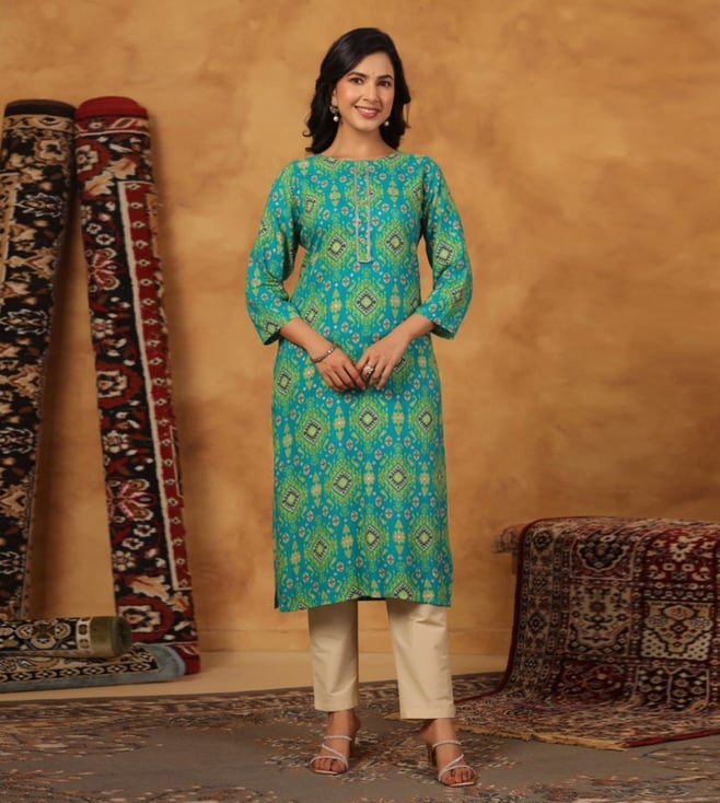 Blue Varisha Pacific Printed Relaxed Fit Kurti