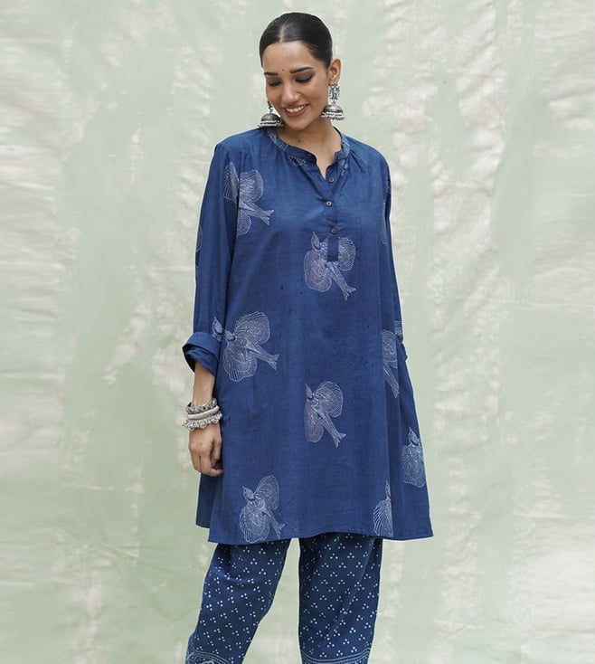 Indi Chhaya Malhar Blue Hand Block Print Cotton Dress