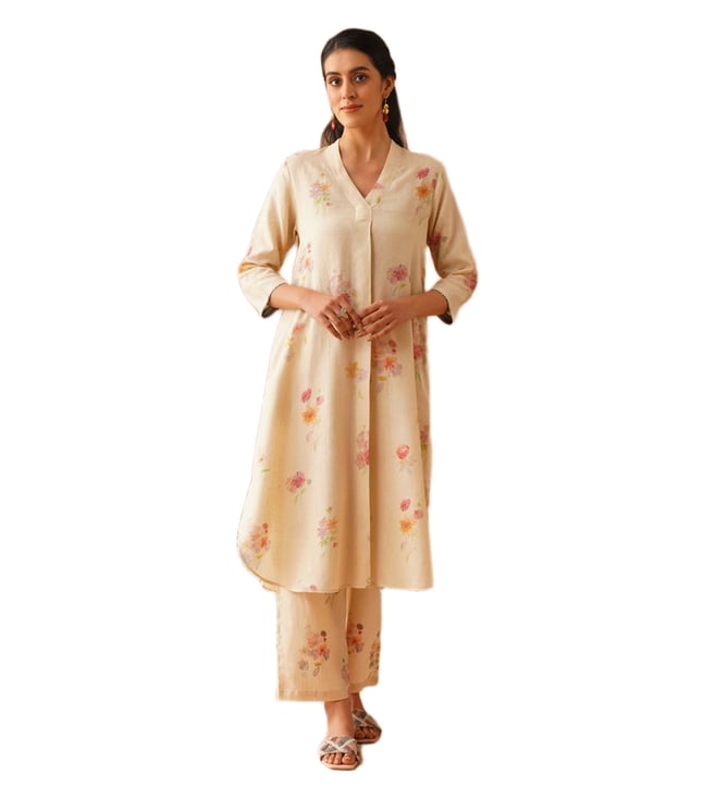 Label¿Aishwaryrika Beige Georgette Relaxed Fit Embroidered Kurta