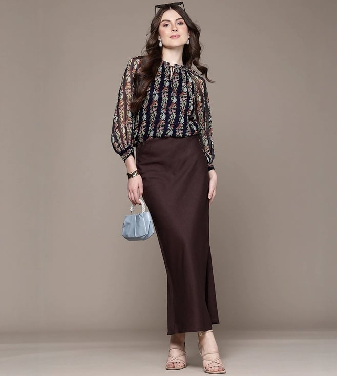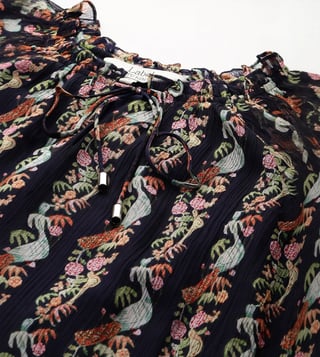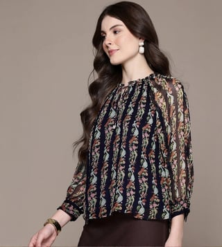 Keep your look simple yet stylish by wearing this navy regular fit top from Label Ritu Kumar. Tailored to sartorial perfection from premium quality fabric, it assures a soft and soothing touch against the skin. The round neck adds to its appeal. The printed pattern makes it a captivating choice.
