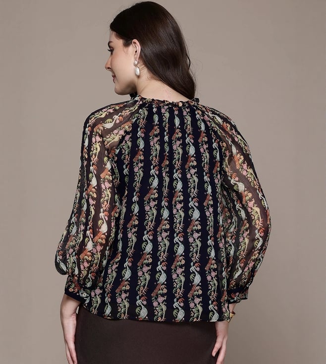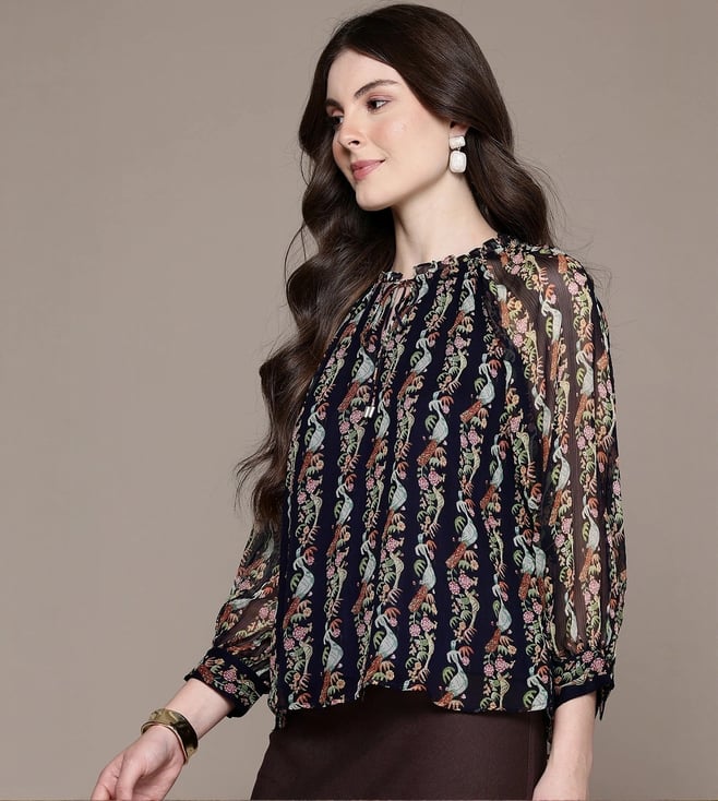 Label Ritu Kumar Navy Regular Fit Printed Top