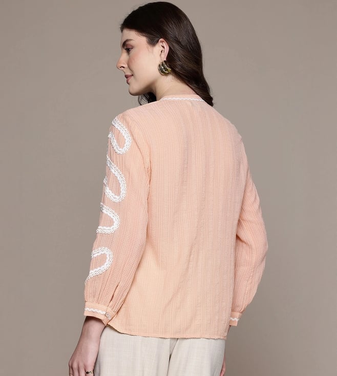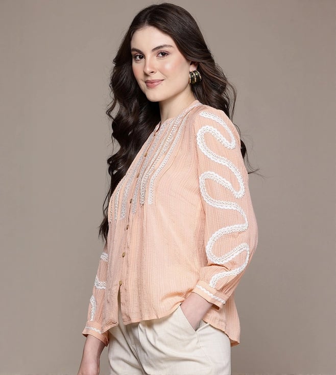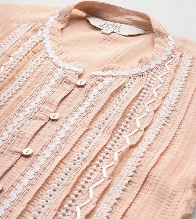 Label Ritu Kumar Peach Relaxed Fit Embroidered Top