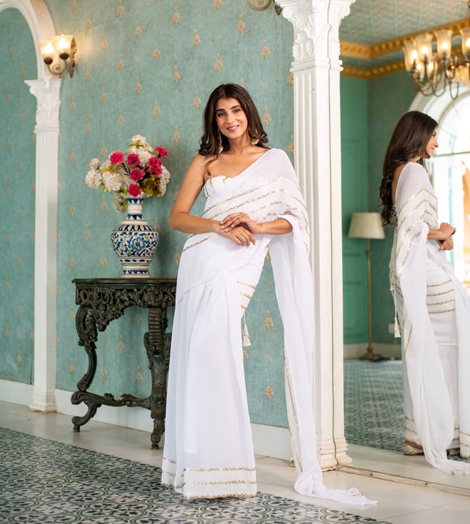 White Comfort Fit Skirt Saree